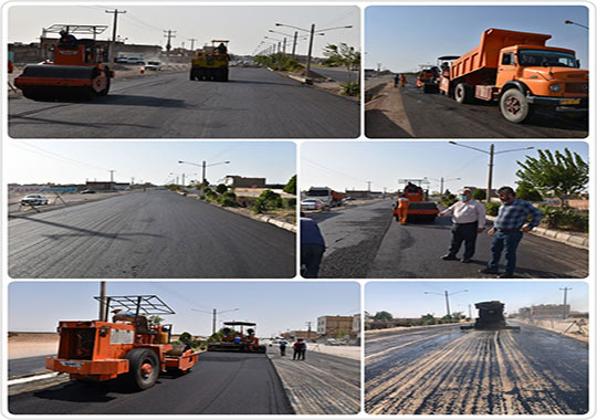 عملیات قیر پاشی و آسفالت قسمت احداث شده پل باکسی کمربندی شهر خواف