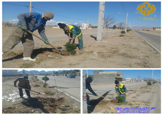 عملیات کاشت و واکاری فضای سبز  بلوار ولیعصر توسط واحد فضای سبز شهرداری خواف
