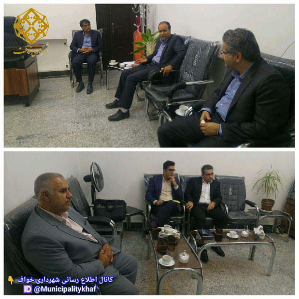 حضور مهندس فکور (رییس محترم گروه فضای سبز دفتر فنی استانداری خراسان رضوی و ناظر فضای سبز شهرداری های خواف و رشتخوار ) و مهندس سعیدیان (معاون محترم بازرگانی سازمان همیاری شهرداری های خراسان رضوی ) در شهرداری خواف و دیدار و گفتگو با شهردار محترم خواف پیرامون فرصتهای مشارکت و سرمایه گذاری در شهر خواف